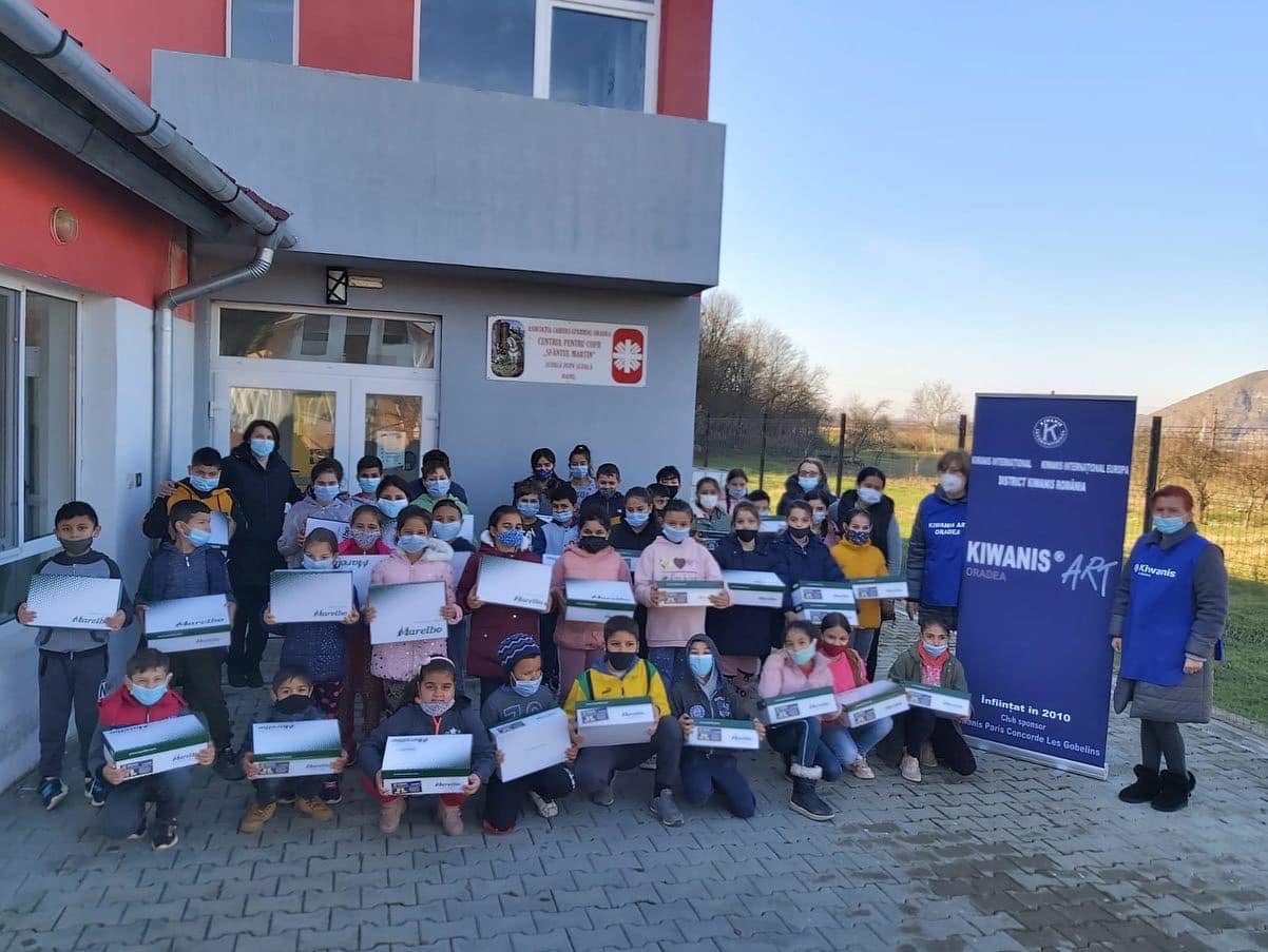 Kiwanis Childrens Fund (KFC) schenkt meer dan 4000 paar warme schoenen aan behoeftige Roemeense kinderen